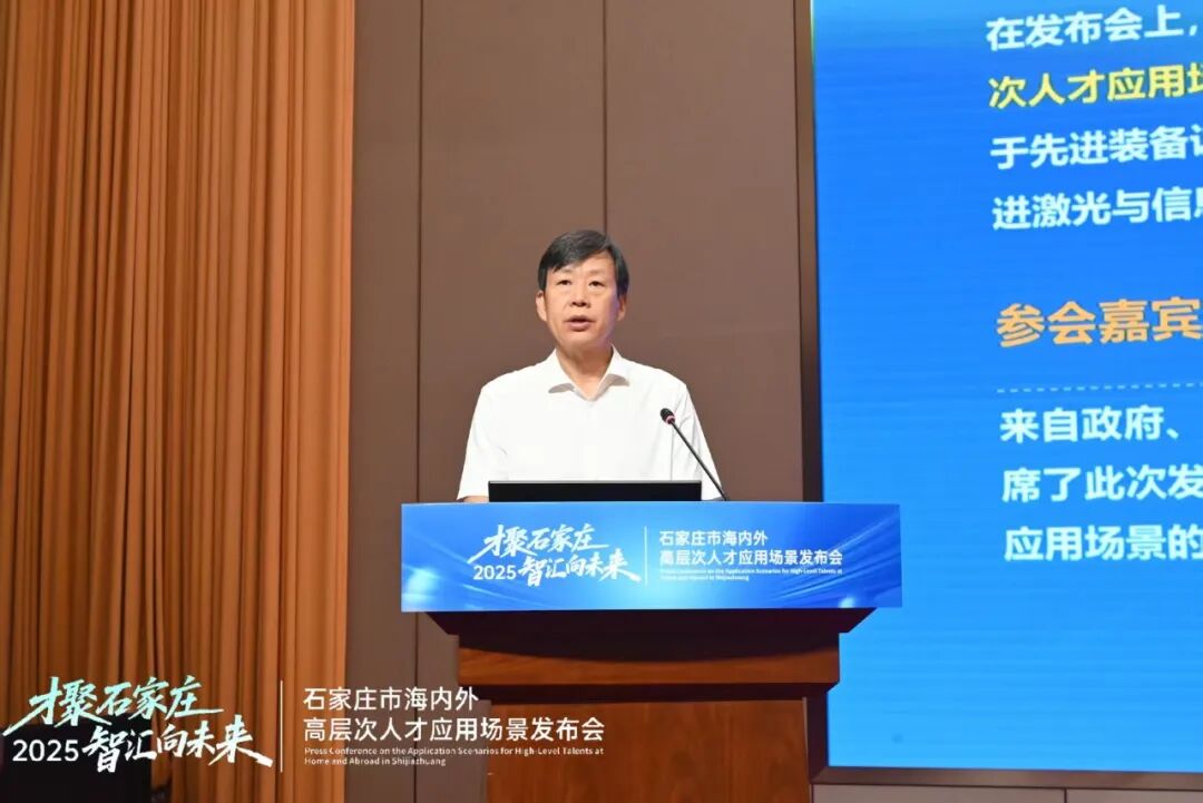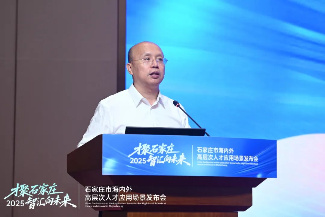 2025年8月20日,石家庄市人民政府与河北工业大学联合主办了“海内外高层次人才应用场景发布会”。此次发布会由石家庄市科学技术局、河北工业大学创新研究院(石家庄)以及河北(石家庄)海外人才离岸创新创业基地共同承办,旨在有效促进开放共享与协同创新的生态建设,助力前沿技术与省会发展对接,精准匹配企业需求与专家资源,切实突破成果转化的“最后一公里”。河北工业大学党委副书记、校长王利民,河北省科技创新服务中心主任董玉慧,石家庄市委副书记、代市长王现坤出席并致辞。市科技局局长常志卷,学校副校长郎利影分别发布海外、国内高层次人才场景。活动由石家庄市副市长李为军与河创院院长安海龙分别主持。