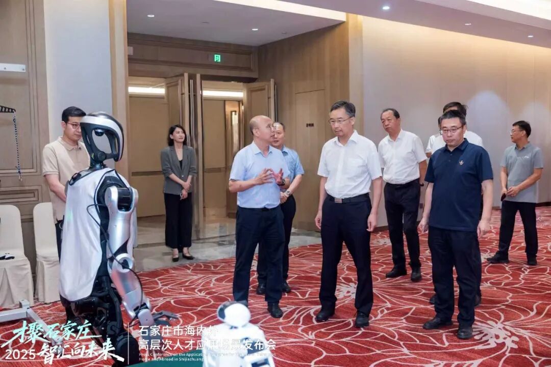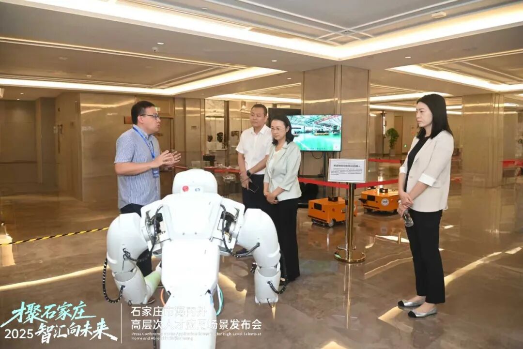 会前,王现坤、李为军、董玉慧等领导分别参观了校企协同创新建设成效展,来自深圳乐聚机器人公司的人形机器人,来自河北工业大学的具身智能康养机器人、新能源无人驾驶车、智能微针眼贴等项目,获得领导和参展嘉宾的一致好评。