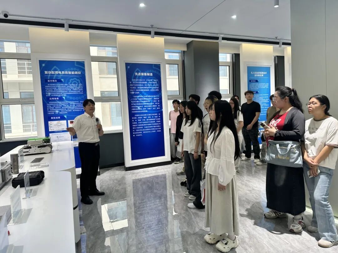 在河创院,老师们将前沿科技资源转化为思政育人的源头活水,让科技创新成果成为广大学子触手可及的、亲手体验的鲜活事例,抽象宏大的“新质生产力”概念在与科技的交互中变得可感可触。河创院创新团队的研究生代表以本团队正在开展的实验为例,讲述了科研团队如何以区域发展需求为导向攻坚克难,将河北工业大学“工学并举”办学特色融入技术突破中。与此同时,带队教师依托鲜活的科技场景,在现场将创新精神、责任担当等结合学生们的专业实际情况,为学生们巧妙解析新质生产力背后蕴含的创新动能与时代责任,让科技报国、科教兴国的种子在青年心中悄然萌发。