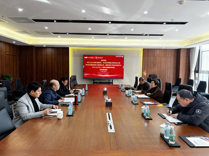 2024年1月24日,河创院与华为技术有限公司河北分公司、北京方舟英才教育科技集团有限公司就校企合作共建党政数字化培训基地平台项目,举行工作会谈。河北省委统战部原常务副部长许毅、河北华为政企教育部总经理于水成、浙江华为院校解决方案北方区总监张晓博,方舟英才董事长曹艳丽,河北工业大学机械工程学院教授张鹏,河创院院长安海龙、副院长范书瑞、综合事务部主任曹荣康,参加此次对接会。