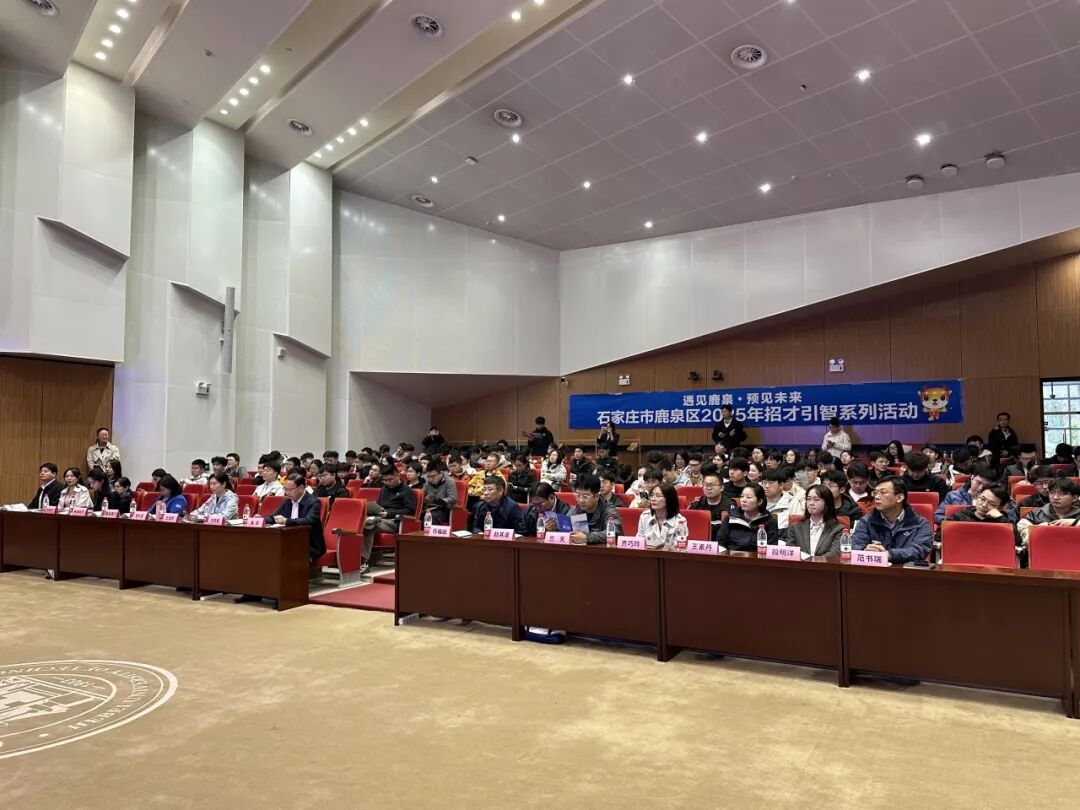 随后,任福战在致辞中对鹿泉区和各企业长期以来给予学校的信任与支持表示感谢,并回顾了河北工业大学与鹿泉区在校地合作与人才培养方面的成果。他指出,河创院作为校地协同创新的重要平台,自落地石家庄以来为近千名工大学子提供了实践锻炼和就业发展的机会。他鼓励同学们把握机会,了解鹿泉产业与人才政策,将个人理想融入区域发展,实现在实干中成长、与时代同频共振。