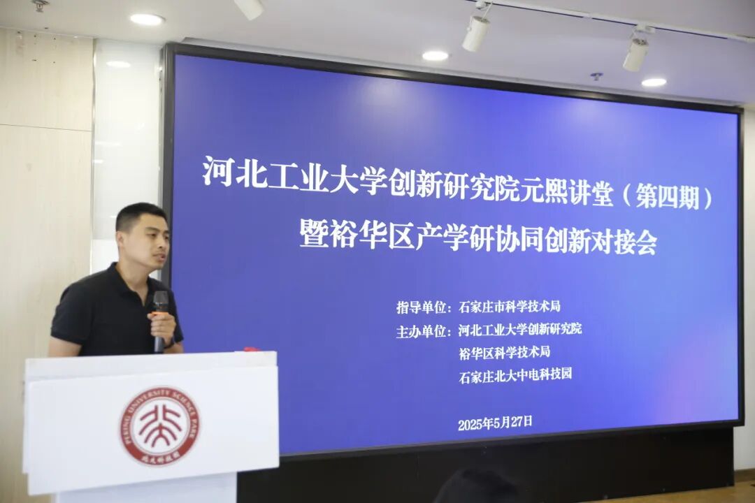 安海龙回顾了元熙讲堂开办至今的相关情况,介绍了河创院“陪伴式-众筹”科研创新合作模式。他指出,河创院举办的元熙讲堂前三期带领各领域代表深入鹿泉区、行唐县、无极县,聚焦人工智能技术等前沿科技领域,倾听企业家创新转型需求。此次走进裕华区,是河创院继续拓展产学研合作平台,推动多方协同创新的又一有效实践。裕华区是石家庄市科技创新能力较强、经济发展较快的核心区域,希望通过此次活动,推动企业技术需求与高校创新供给精准匹配,加速科研成果在区域主导产业中转化落地,为裕华区高质量发展注入可持续动能。