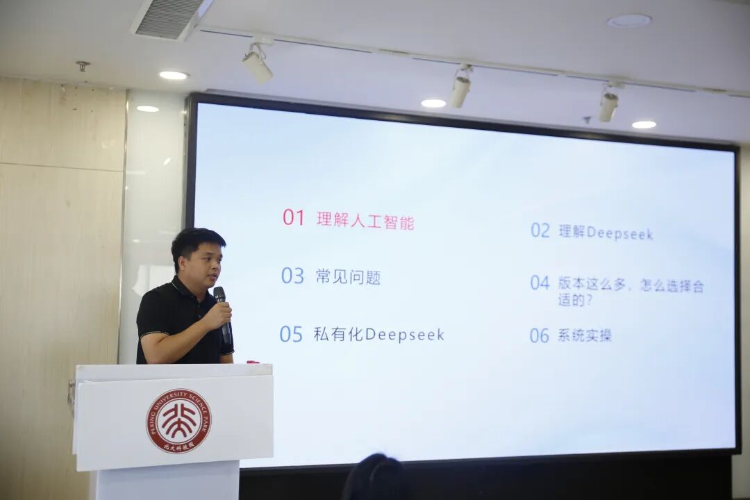 雷晓辉以《DeepSeek从入门到实战:高效使用指南与行业应用探索》为题,深入讲解了国产开源大模型DeepSeek基础操作与高效部署策略,并结合裕华区金融商务、数字经济、智慧物流等主导产业,剖析了人工智能技术在企业数字化转型中的实际应用场景,他指出DeepSeek的个性化应用可驱动产业降本增效,建议裕华区企业联合高校团队,构建企业专属知识库,真正实现前沿科技赋能生产经营,助力区域数字经济跃升与智慧城区建设。